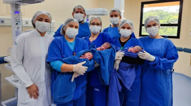 A cesariana foi realizada com suporte multiprofissional, envolvendo obstetra, anestesista, instrumentadora, enfermeiras, técnicas de enfermagem e três pediatras — um para cada bebê. Mesmo com estrutura preparada para UTI Neonatal, os recém-nascidos apresentaram boas condições clínicas e receberam alta em poucos dias. A mãe permaneceu internada por mais tempo, sob acompanhamento pós-operatório.