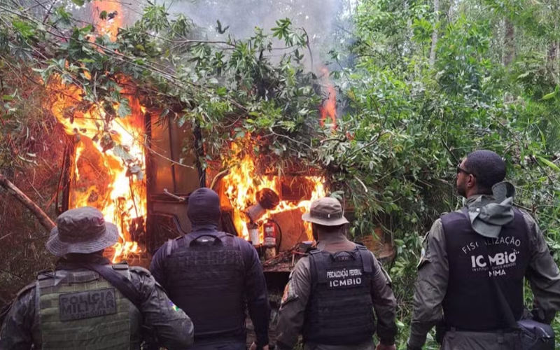 Agentes ambientais durante a operação Terra Protegida — Foto: Reprodução ICMBio