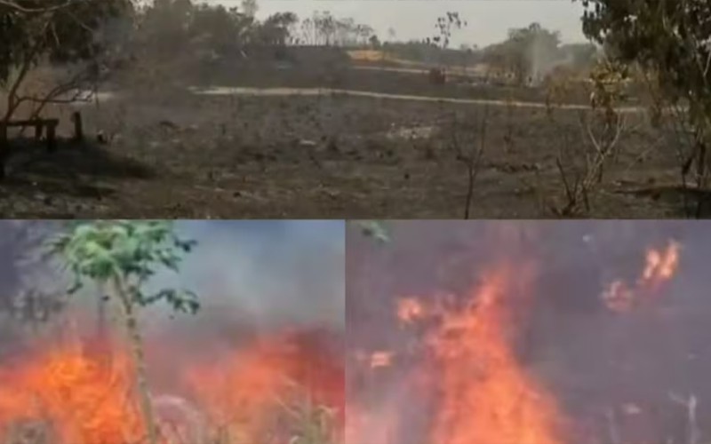Incêndio destrói área de vegetação equivalente a 2 campos de futebol no interior do Pará — Foto: Reprodução/TV Liberal