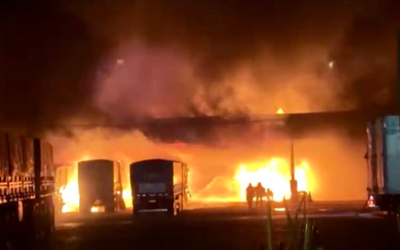 Os bombeiros trabalharam por várias horas até hoje de madrugada para evitar que as chamas se espalhassem e atingissem mais carretas que estavam próximas. Houve algumas explosões.