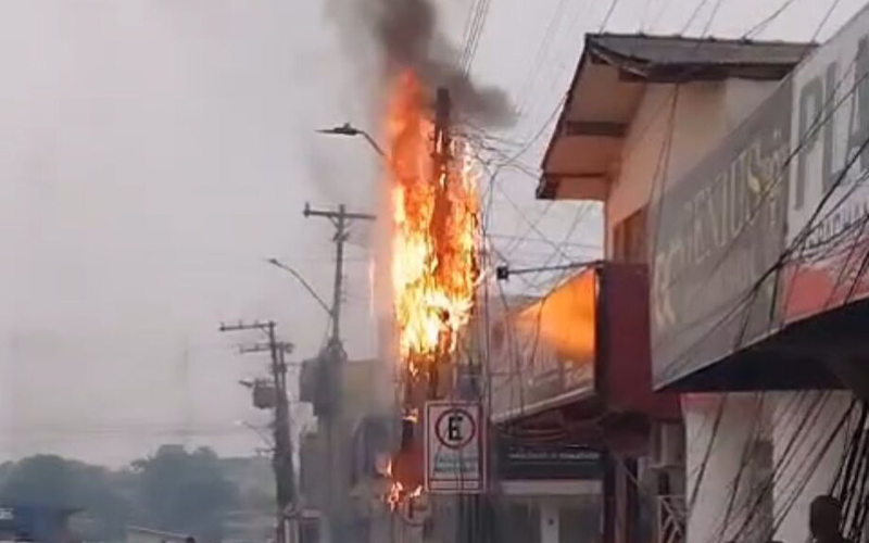 Na manhã desta segunda-feira (2), um incêndio em um poste de energia elétrica causou transtornos no cruzamento da Travessa 15 de Agosto com a Rua Nova de Santana, no centro de Itaituba, sudoeste do Pará.