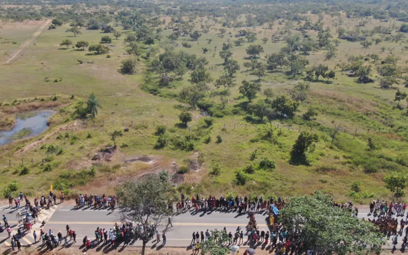 (Foto: Ascom/CIR) – Indígenas das terras indígenas Raposa Serra do Sol e São Marcos bloquearam, na manhã desta terça-feira (29), o quilômetro 666 da rodovia federal BR-174, em Pacaraima, no Norte de Roraima. A Polícia Rodoviária Federal (PRF) informou que monitora o protesto.