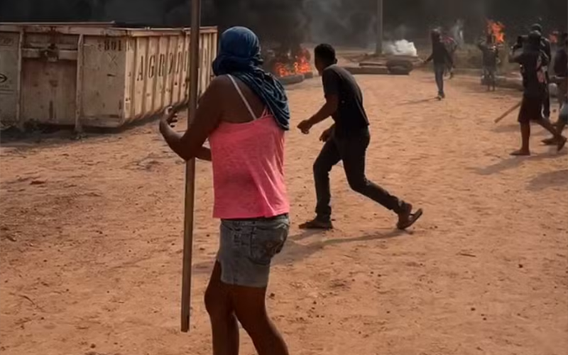 A comunidade também afirma que tem sido atacada com gás lacrimogêneo e bombas de efeito moral por seguranças privados da empresa. Dizem também que a via em que dá acesso a comida e água foi fechada pela Agropalma.