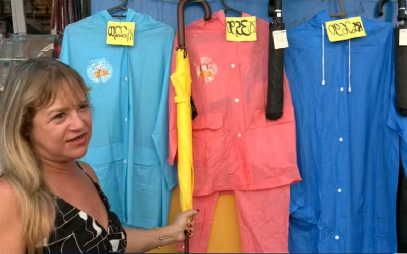 “Todo ano a gente já faz o nosso pedido programado para chegar a mercadoria para vender no fim do ano. Geralmente no início de dezembro já tem bastante chuva e venda desses produtos”, contou Sandra.