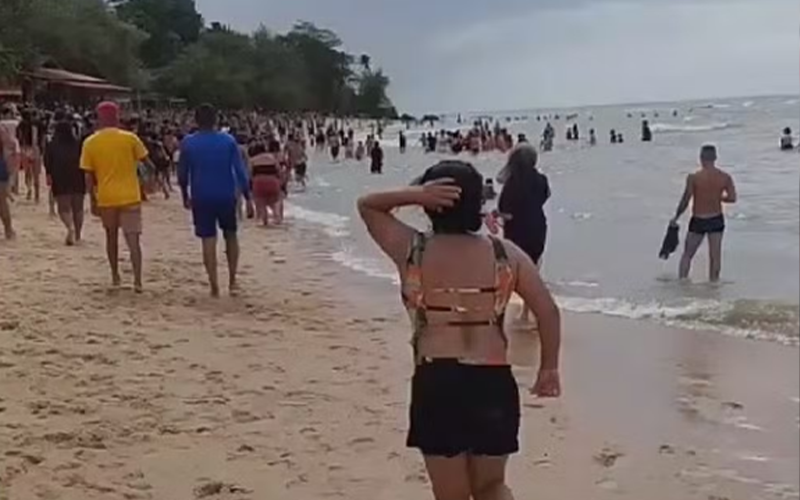 Momento do afogamento na praia de São Francisco, ilha de Mosqueiro — Foto: Divulgação/ Redes Sociais