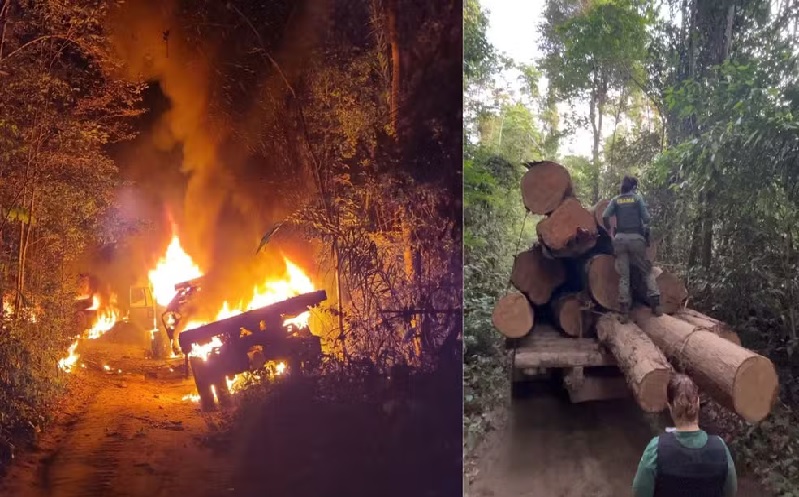 Durante a ação foram inutilizados 13 caminhões de transporte de toras, que seriam levados a serrarias para o transporte da madeira extraída da Amazônia.