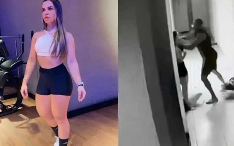 Imagens de câmeras de segurança obtidas pelo g1 mostram Valdenir da Silva Almeida agredindo a mulher dentro do prédio onde o casal morava, horas antes de ela ser encontrada morta, no último domingo (26).