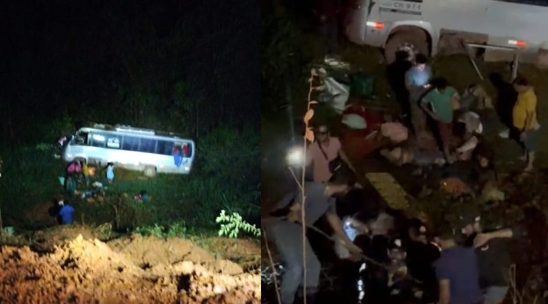 Um micro-ônibus que presta serviço para a Secretaria Municipal de Saúde de Uruará tombou quando retornava de Altamira, transportando pacientes que realizam tratamento de hemodiálise no Hospital Regional da Transamazônica.