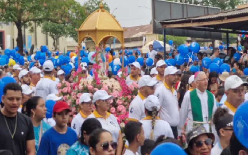 Às 8 horas, após o término da missa, teve início a procissão com a imagem peregrina de Nossa Senhora da Conceição. O percurso foi marcado pela alegria das crianças, que soltaram balões nas cores azul e branco, embaladas pelo hino de Nossa Senhora. As crianças tiveram a oportunidade de empurrar a corda, que simboliza proteção e fé para muitos devotos. Participar dessa tradição é considerado por muitos um ato de devoção e um gesto de agradecimento pelas bênçãos recebidas.