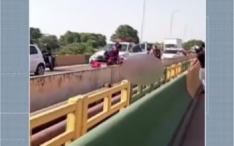Corpo ficou entre os dois sentidos da ponte. — Foto: Reprodução / TV Liberal