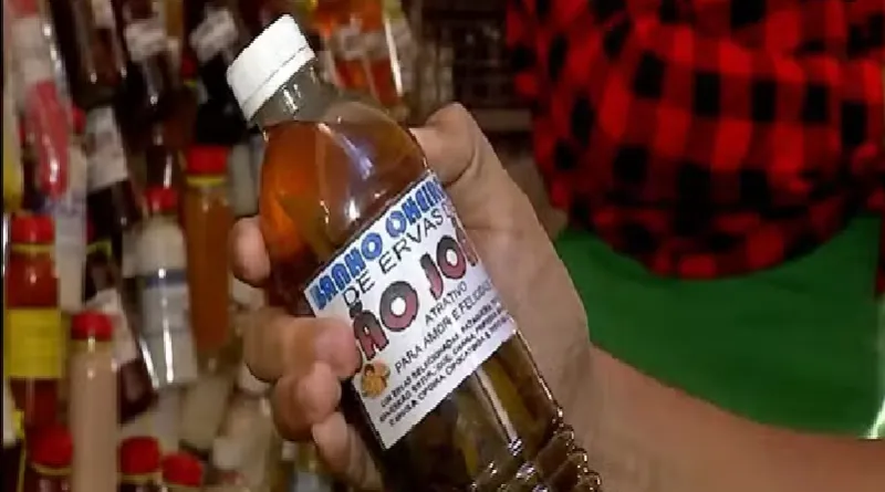 Enquanto o casamento simbólico é destaque em outras festas juninas, na Amazônia os pedidos vão além. São mais de 50 tipos de banhos, com nomes como abre-caminho, atrai-amor, chega-te-a-mim, sai-azar e dinheiro no bolso. Cada um preparado com um mix específico de folhas, raízes e intenções.