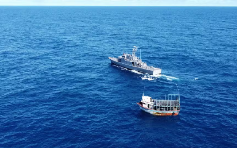 Momento da abordagem ao barco pesqueiro pela Marinha do Brasil. — Foto: Reprodução / Marinha do Brasil