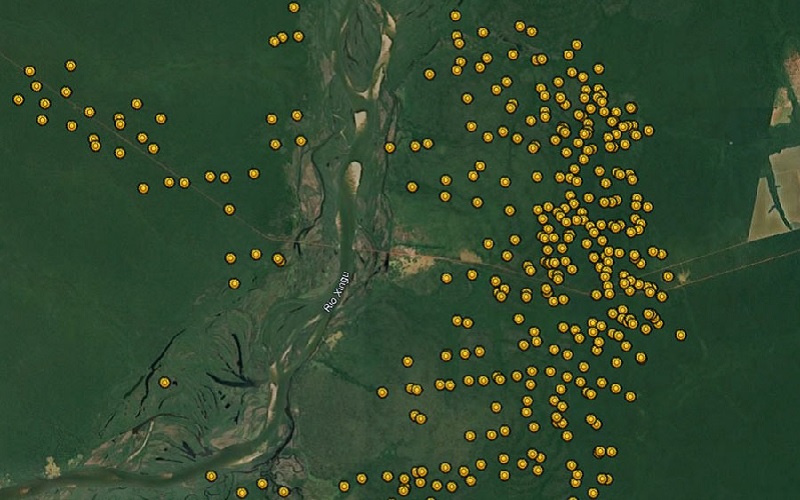 Focos de queimadas no parque indígena do Xingu, Pará. Foto: Reprodução/Google Earth
