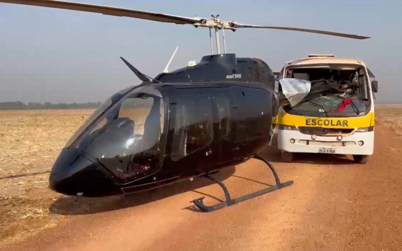 (Foto:Reprodução) – Um helicóptero que estava estacionado numa fazenda no interior do estado do Pará acabou sendo atingido por um micro-ônibus escolar. O acidente aconteceu numa fazenda em Santana do Araguaia, no estado do Pará.