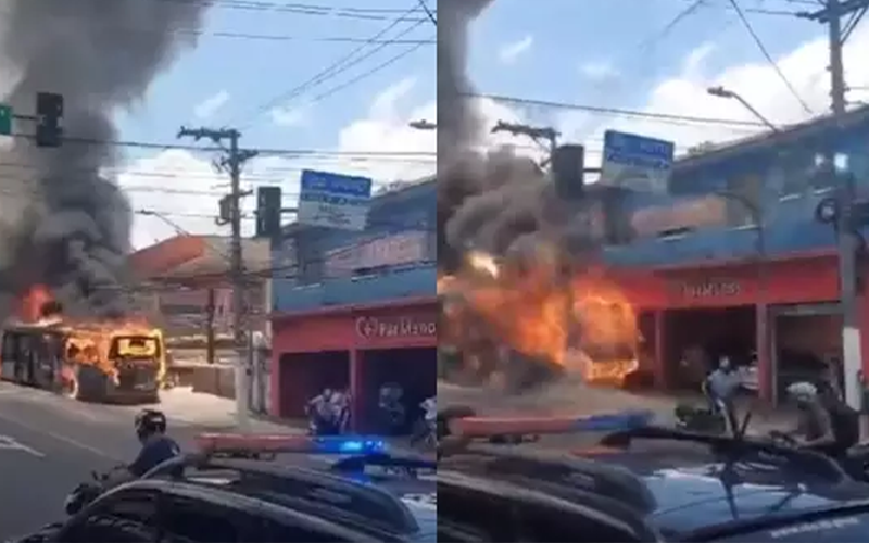 Logo depois, o ônibus desgovernado desceu a rua. Nas redes sociais, há vídeos que mostram o coletivo tomado por chamas e desgovernado na avenida. O meio de transporte só para após bater em um poste de rede elétrica.