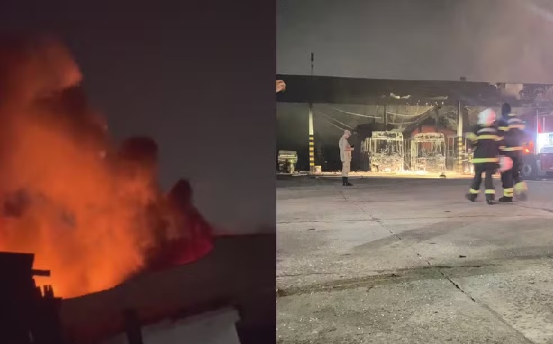 Incêndio destrói ônibus em garagem de empresa em Belém