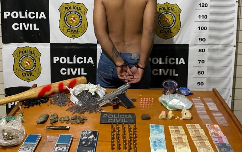 Além do cumprimento do mandado de prisão, também foi realizado o mandado de busca e apreensão, sendo apreendidos uma arma, 32 munições, um taco com a sigla da facção, 24 comprimidos de êxtase, 75 gramas de material análogo à pasta base de cocaína, 140 gramas de material análogo a oxi, 100 gramas de material análogo à maconha, 2 balanças de precisão, aproximadamente 200 pinos para armazenar cocaína, R$ 540 em espécie e um celular – que será periciado e analisado para a continuidade das investigações.