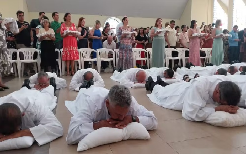 Neste sábado (21), a Arquidiocese de Santarém, no oeste do Pará, viveu um momento marcante com a ordenação de 35 homens casados no diaconado permanente. A celebração ocorreu na Igreja Santíssimo Sacramento, localizada no bairro Santíssimo, e foi presidida pelo arcebispo metropolitano Dom Irineu Romam, que realizou a imposição das mãos e a oração consecratória.