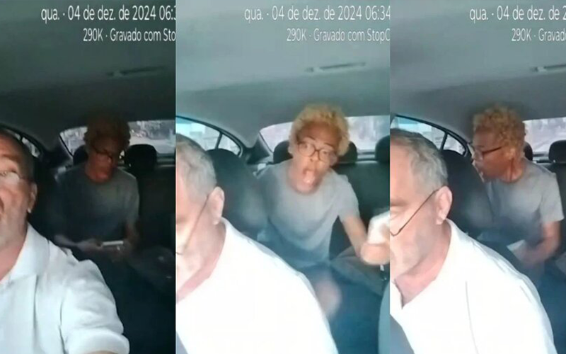 No registro feito pelo passageiro, ele liga a câmera do celular, inicia uma discussão e chega a abrir a porta do carro para pedir socorro, alegando estar sendo atacado. No entanto, o passageiro não sabia que o veículo contava com uma câmera oculta, que registrou toda a viagem e pode comprovar a versão do motorista.