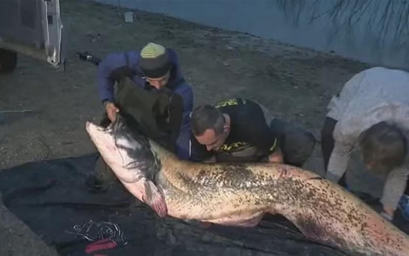 Três pescadores pegaram um bagre gigante na represa de Dyakovo, perto de Dupnitsa (Bulgária) na semana passada. O peixe pode ser avaliado por especialistas do Guinness Book, relata a bTV, que diz acreditam numa recorde obtido pelo grupo: 120 kg e tem 2,70 metros de comprimento.