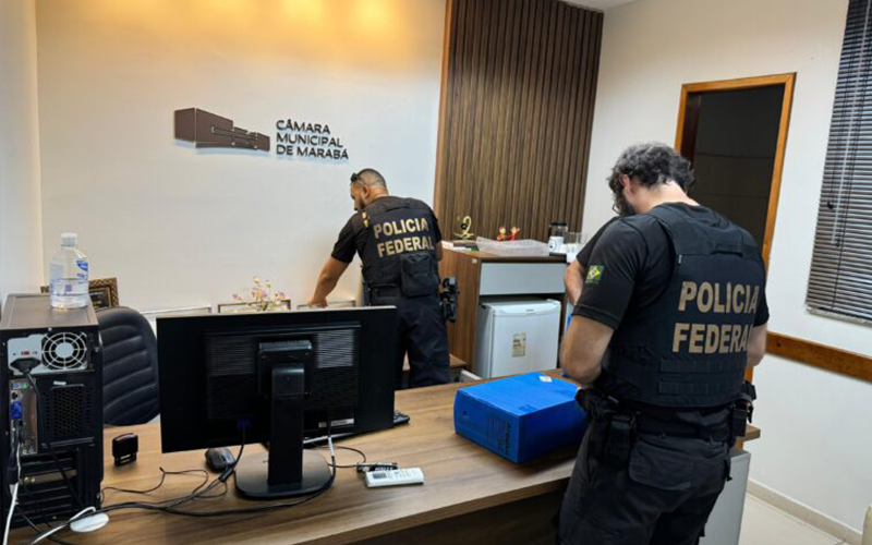 Foram cumpridos três mandados de busca e apreensão, expedidos pela Justiça Eleitoral após representação do Ministério Público Eleitoral: dois nas casas dos alvos e um em gabinete na Câmara Municipal de Marabá.