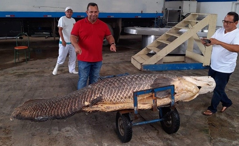 Um peixe gigante da espécie pirarucu, com 2,9 metros e 220 quilos foi capturado por ribeirinhos na ilha de Mameloca, no município de Japurá (distante a 787 quilômetros de Manaus). Atualmente, o pescado está em um frigorífico, na zona este de Manaus, sendo mantido congelado e sem vísceras.