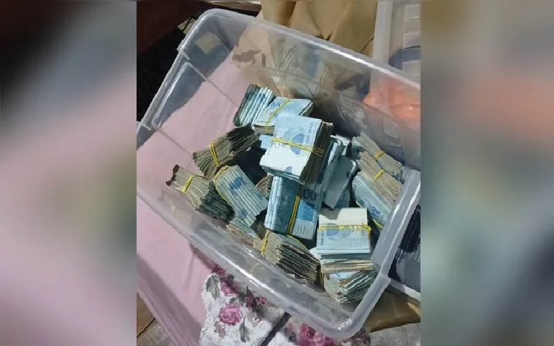 R$ 195 mil em espécie estavam guardados dentro de um recipiente plástico | Foto: Divulgação