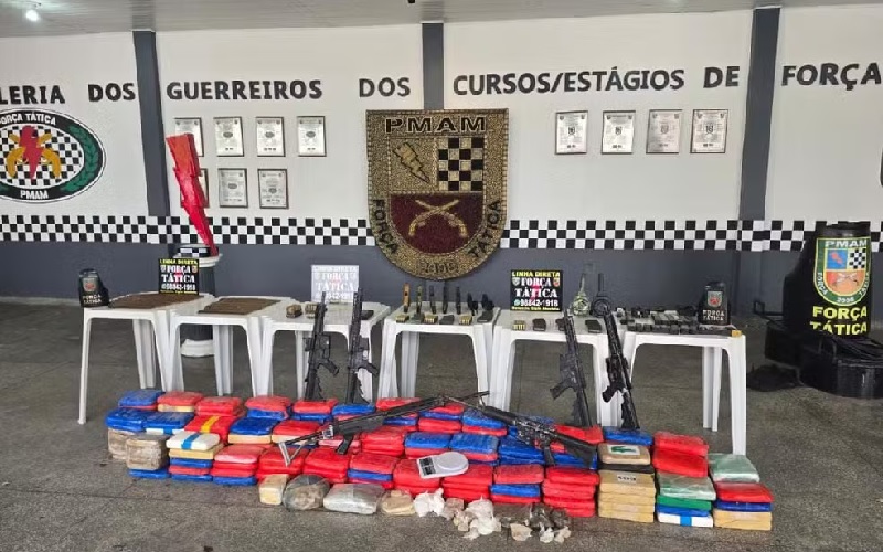 A apreensão foi realizada por policiais da Força Tática, com o apoio da Secretaria Executiva Adjunta de Inteligência (Seai). Durante a operação, foram encontrados diversos tabletes de entorpecentes e armas de fogo, incluindo fuzis.