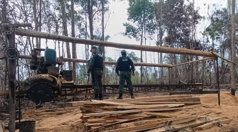 De acordo com a PM, a equipe foi até o local indicado após uma denúncia. Ao chegar, foi constatado a prática de exploração ilegal de madeira. Ao avistar a viatura, dois suspeitos fugiram em direção à mata, impossibilitando as detenções.