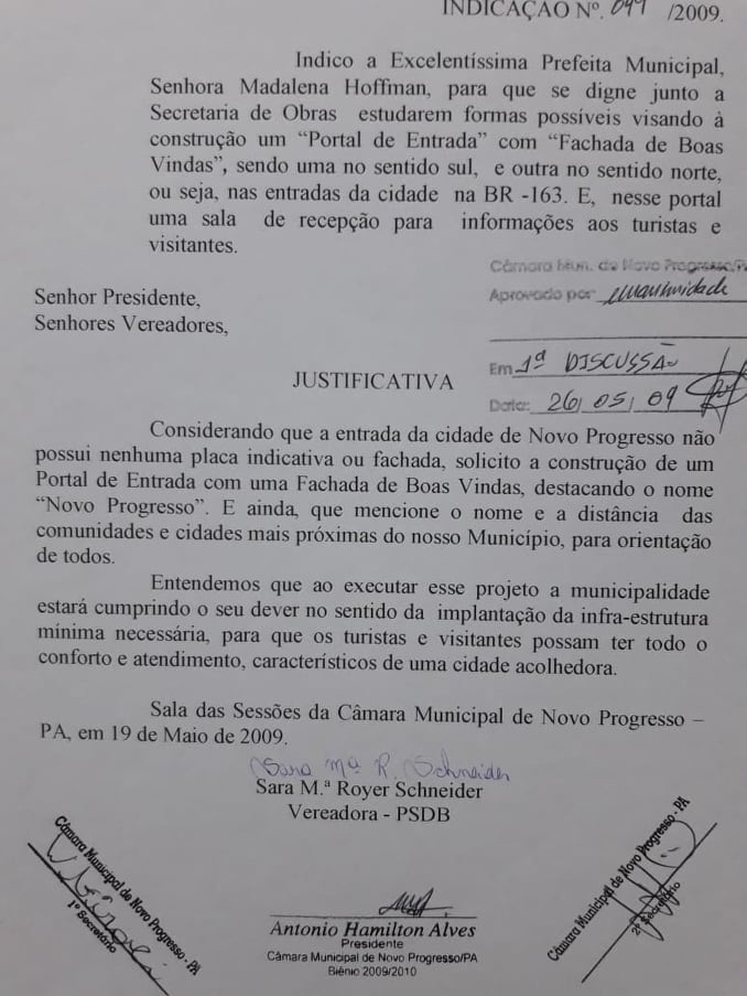O Jornal Folha do Progresso entrou em contato com a ex-vereadora Sara Roer do PSDB que afirmou ser autora do documento requerendo a construção da obra e relatou o objetivo;