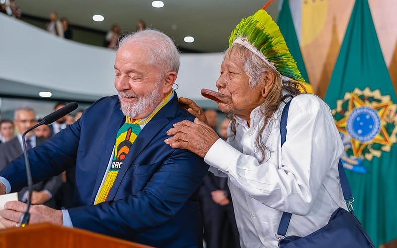 Semana passada, Raoni, que é liderança de destaque internacional na atuação política em prol da defesa do meio ambiente e dos direitos indígenas, – e subiu a rampa com Lula na posse em 2023 – afirmou que irá cobrar do presidente o cumprimento das promessas relacionadas às questões ambientais que impactam diretamente na vida dos povos originários.