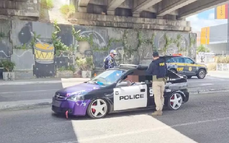Um carro caracterizado como uma viatura de polícia dos Estados Unidos chamou a atenção de policias rodoviários federais no último domingo (3), na BR 104, em Caruaru, Agreste de Pernambuco. Apesar de inusitadas, as modificações no veículo estavam autorizadas pelo Departamento Estadual de Trânsito de Pernambuco (Detran-PE).