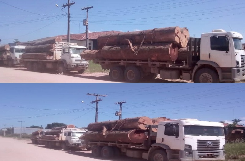 Nos caminhões estavam sendo transportado mais de 60 60m³ (metros cúbicos) de madeira em tora de espécies diversa.