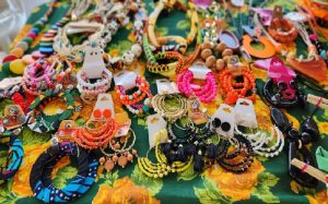 “É a primeira vez que a gente participa dessa feira, então a gente trouxe colares, brincos, pulseiras e artesanato que os homens fazem também. A gente ensina as crianças, os jovens para eles fazerem artesanato”, ressaltou Maria José Kaxuyana, representante da Associação Indigena Katxuyana-Tunayana (AIKATUK).