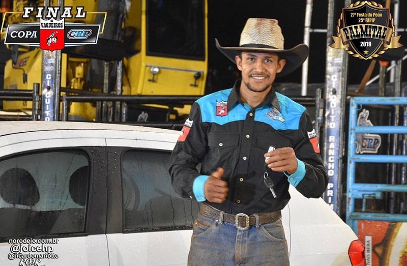 O progressense Hudson Fernandes foi o campeão dos vaqueiros em Palmital (SP), e ganhou um carro 0 km na disputa final.(Foto:Reprodução Facebook)