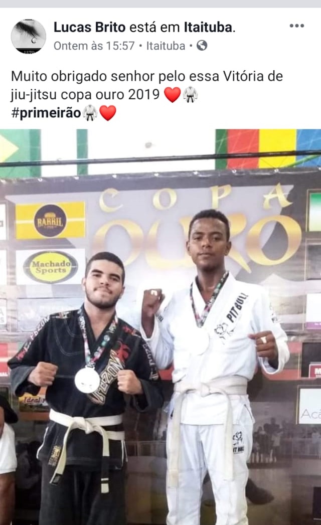 Lucas postou a vitória em sua pagina pessoal no Facebook.