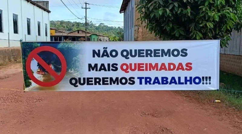 Os manifestantes pedem o fim de uma operação ambiental que veem destruindo maquinas de garimpo na região.