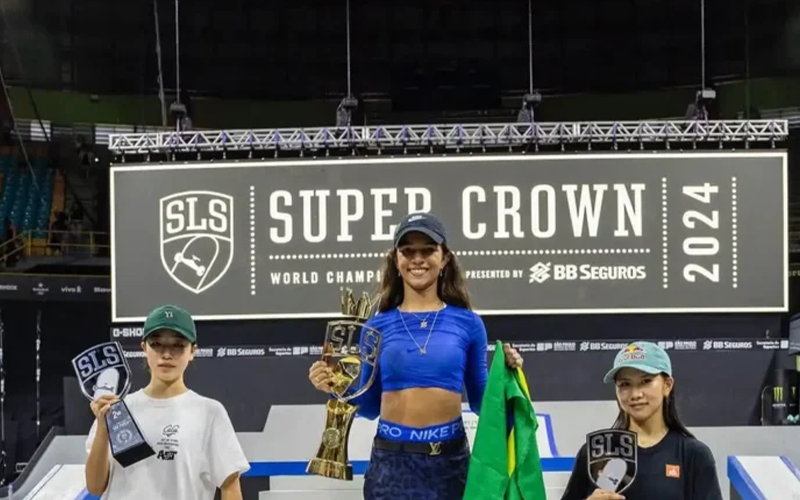 Acostumada a façanhas incríveis sob pressão, a maranhense Rayssa Leal, de apenas 16 anos, voltou a fazer história neste domingo (15) ao se tornar a primeira atleta do país a conquistar o tricampeonato na Liga Mundial de Skate Street (SLS, na sigla em inglês). Atrás no placar ao errar as duas primeiras apresentações das manobras no Super Crown (competição final que define o campeão da temporada), Rayssa levou o Ginásio Ibirapuera ao delírio ao cravar nota 9.1 na quinta e última chance, vencendo de virada a disputa com quatro japonesas (duas delas campeãs olímpicas) e uma australiana.