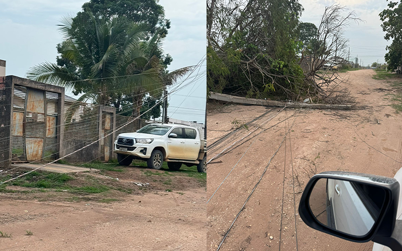 Moradores do Bairro Otávio Onetta, em Novo Progresso, estão preocupados com a situação de postes caídos na Rua Airton Senna. Segundo relatos, os fios de energia permanecem no chão, oferecendo sério risco a pedestres que circulam pela via. Apesar das interferências, a empresa Equatorial Energia ainda não apresentou uma solução. Os moradores pedem uma resposta urgente para evitar acidentes graves.