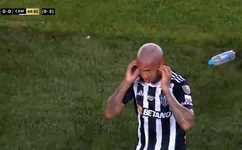 O centroavante, que mais uma vez foi titular, saiu para entrada de Rubens, aos 17 minutos do segundo tempo. Antes mesmo de chegar ao banco de reservas, tirou do calção um protetor de ouvidos, colocou nas duas orelhas, mostrou língua para os torcedores do River e fez um gesto como se imitasse a faixa da camisa do Boca Juniors, maior rival dos “millonarios”.