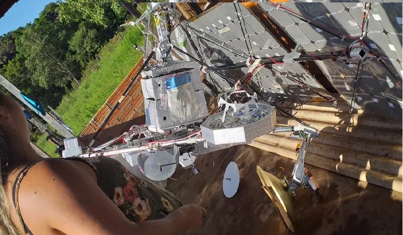 Satélite encontrado em propriedade rural da comunidade Aracuri, região do Lago Grande, em Santarém-PA — Foto: Aurivane Pereira/Arquivo pessoal.