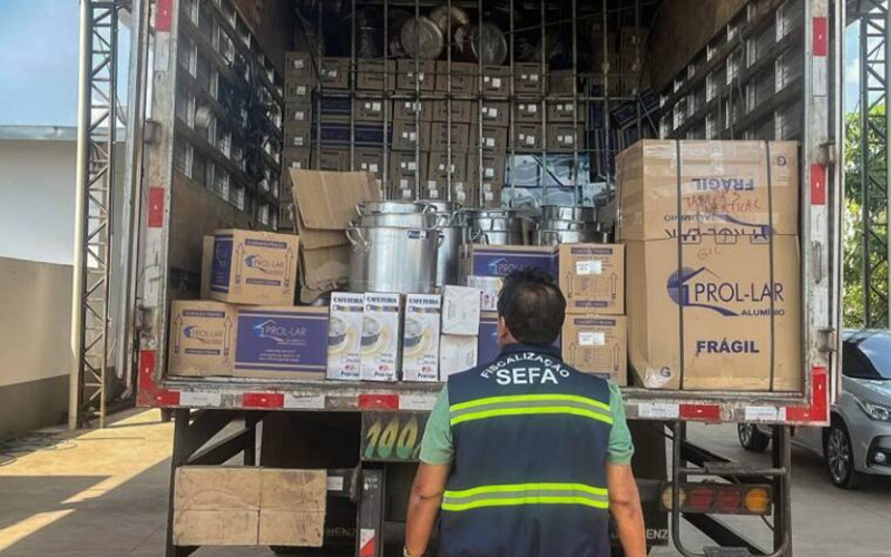 Fiscais de receitas estaduais da Secretaria de Estado da Fazenda (Sefa), lotados na Unidade de controle de mercadorias em trânsito de Carajás, na Rodovia BR-230 (Transamazônica), município de São João do Araguaia, no sudeste paraense, apreenderam 2.554 panelas, na quinta-feira (24). A carga saiu do município de Juazeiro do Norte (CE), com destino a não contribuintes dos municípios de Itaituba e Tucuruí, no sudoeste e sudeste do Pará, respectivamente.