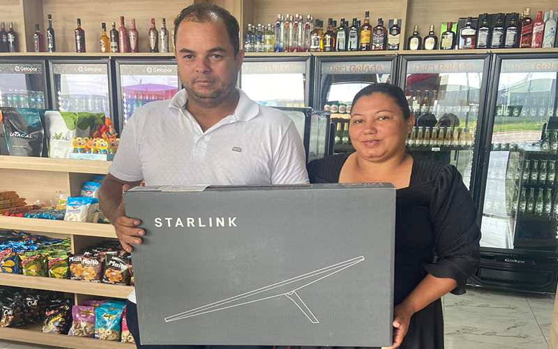 Casal retirou o prêmio- (foto:Reprodução)- O prêmio foi sorteado no dia 31 de dezembro de 2024, o ganhador da Starlink foi um cliente que no período realizou vários abastecimentos e ganhou os cupões com o consumo de cinquenta reais em combustível no Posto & Conveniência Piran, na avenida Brasil esquina com João Atiles no bairro Jardim Planalto em Novo Progresso. O sorteio foi realizado no último dia do ano de 2024, com transmissão ao vivo pelo INSTAGRAM.
