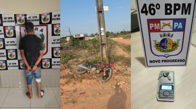 Foto: Reprodução | Um homem foi detido por porte de entorpecentes na manhã deste domingo (7), após uma perseguição policial pelas ruas de Novo Progresso. A Polícia Militar informou que Ivan N. S., conduzindo uma motocicleta Pop vermelha (placa NSY6J25), foi avistado saindo de uma residência ligada ao tráfico de drogas.