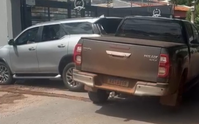 Foto: Reprodução | Revoltado com uma Hilux que estava trancando a saída de seu escritório de advocacia, um homem usou o próprio carro para empurrar o veículo e liberar a passagem.