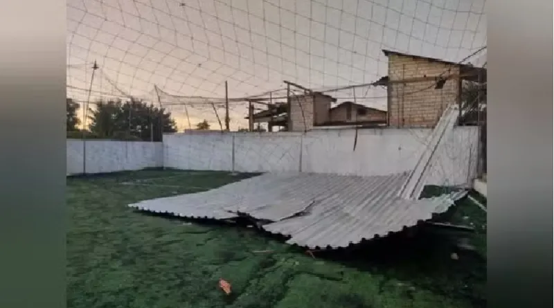 Telhado de morador foi arremessado pelos ventos fortes. Felizmente, não atingiu nenhuma vitima. — Foto: Redes Sociais/ Divulgação