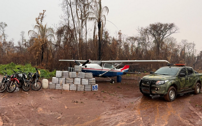 Os policiais do Gefron foram acionados por policiais da PF e da Fundação Nacional dos Povos Indígenas (Funai) após eles notarem a presença de um grupo, em uma área de difícil acesso, retirando cargas de drogas de dentro de uma aeronave.