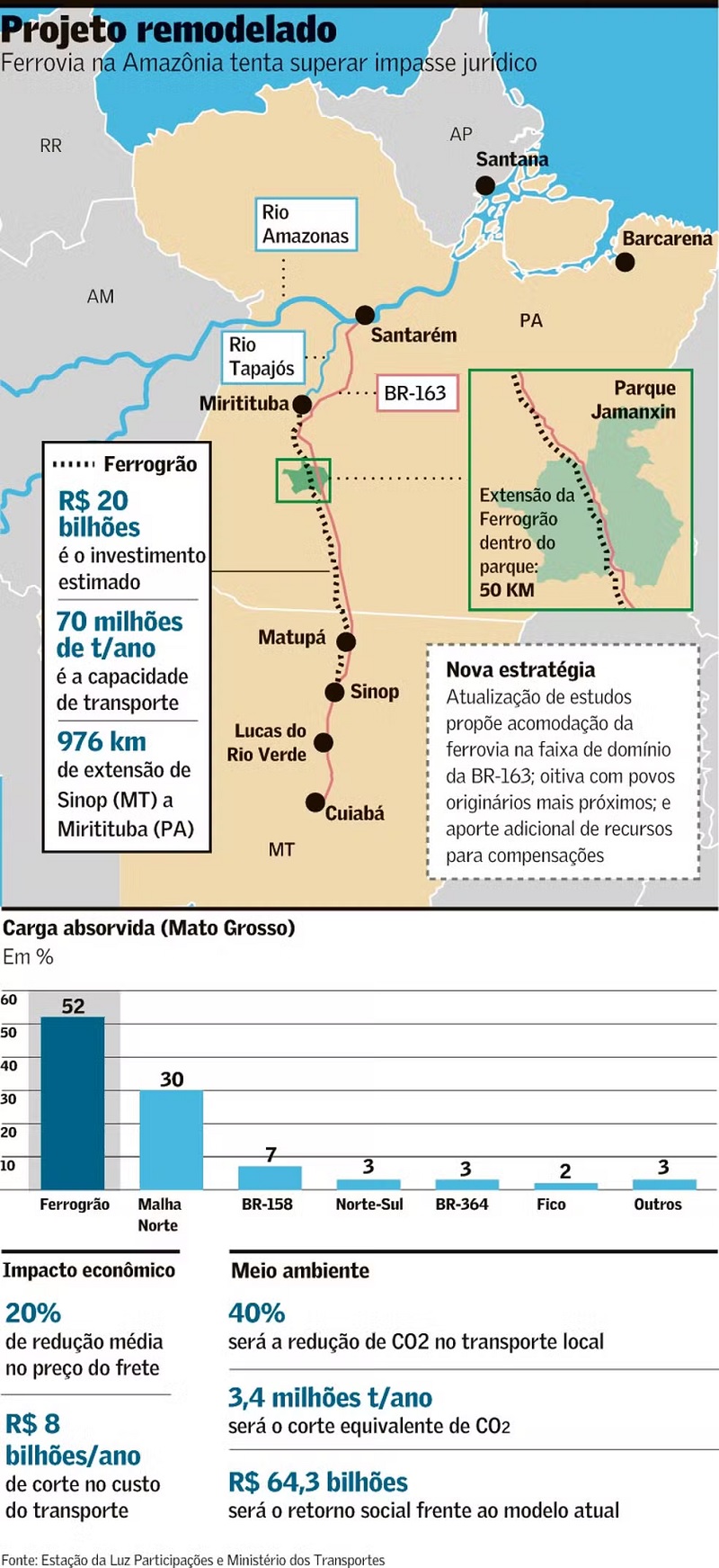 União ajusta traçado da Ferrogrão para tentar neutralizar ação contra o projeto