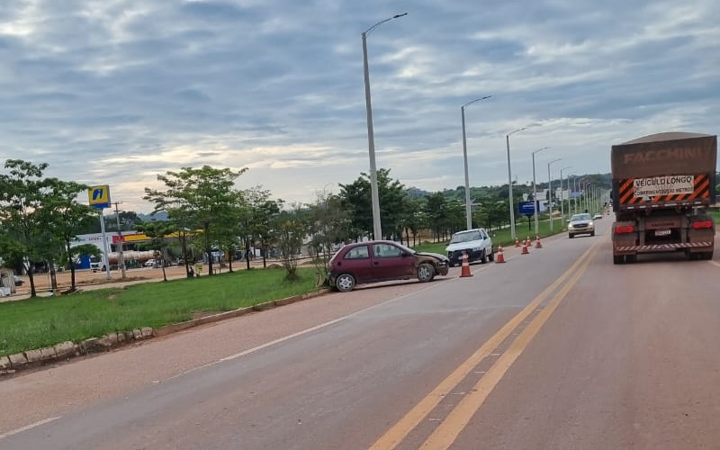 Um Fiat Uno de cor branca colidiu com outro veículo de cor avermelhada (corsa) no início da manhã neste domingo (04/02), em trecho urbano da Rodovia BR-163, na área central de Novo Progresso.