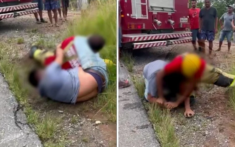 Foi então que um dos indivíduos que estavam no local se apossou de parte da carga e foi repreendido pelo bombeiro. “Houve agressão e ambos caíram ao solo. Neste momento, o indivíduo tentou ferir o militar com um canivete, sendo impedido pelo mesmo”, detalha o Corpo de Bombeiros por nota.